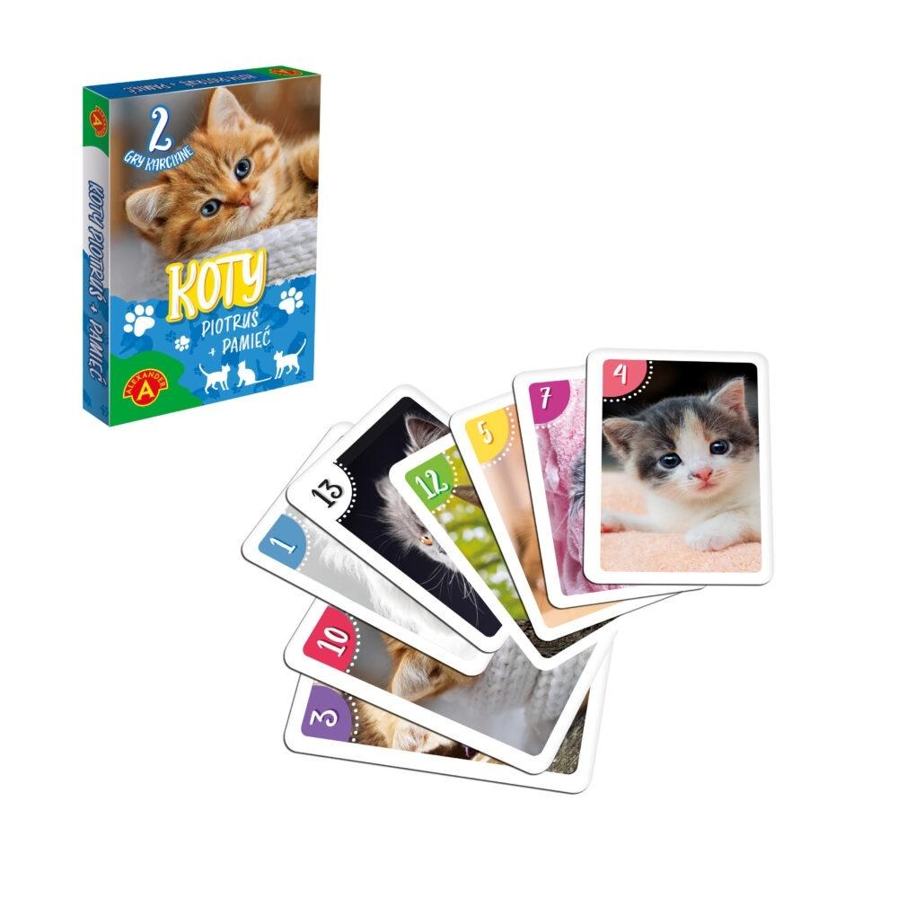 Opis produktuZasady bezpieczeństwaZestaw 25 kart z pięknymi, realistycznymi wizerunkami kotków, dzięki którym można zagrać z dziećmi w dwie podstawowe gry karciane Piotruś i Pamięć. Obie gry wspaniale ćwiczą spostrzegawczość, rozwijają skojarzenia oraz uczą zachowań społecznych. To idealny wstęp dla najmłodszych do świat gier.