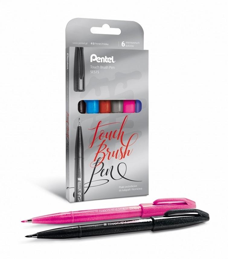 Pisak/pędzelek do kaligrafii SES15, mix 6 kolorów opakowanych w elegancki kartonik.