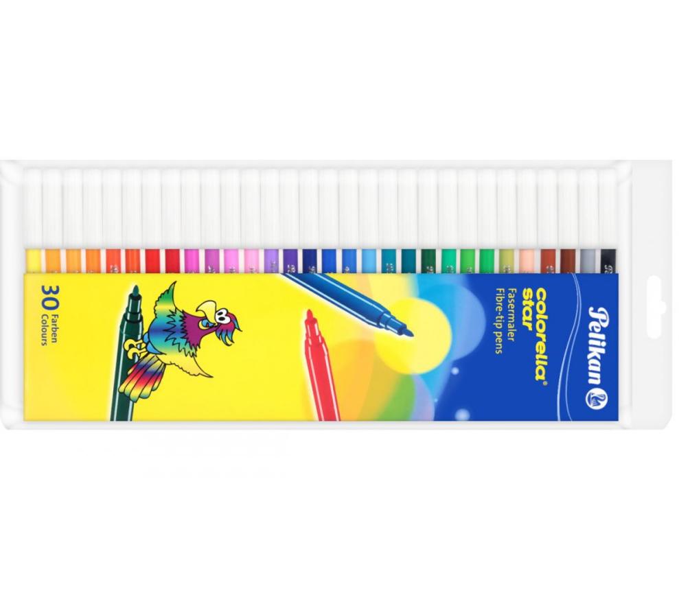 Tusz na bazie wody, wentylowane nasadki, fibrowa końcówka, Szerokość linii ok:8 mm, można je sprać z większości tekstyliów, w opakowaniu 30 kolorów. x