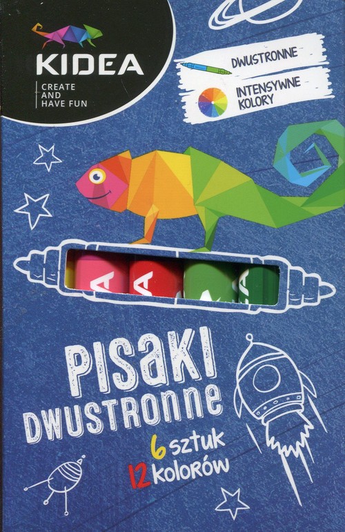 Opis produktuZasady bezpieczeństwaPisaki dwustronne o intensywnym zabarwieniu to idealny zestaw dla małego artysty. 6 sztuk pisaków to aż 12 kolorów. Prace wykonane pisakami będą wyraziste i barwne. x