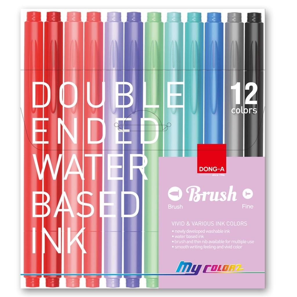 Pisaki dwustronne Dong-a my color 2 z pędzelkiem 12 kolorów