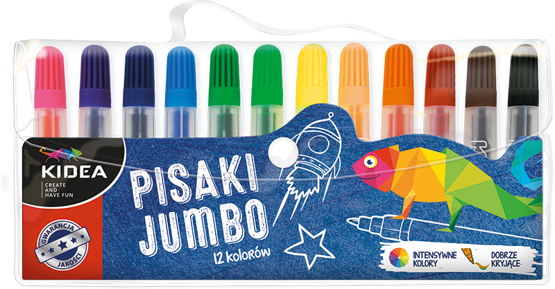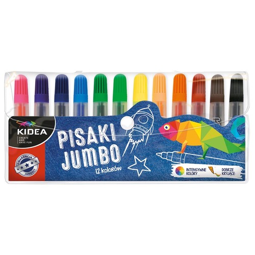 Pisaki Kidea Jumbo przezroczyste 12 kolorów w etui