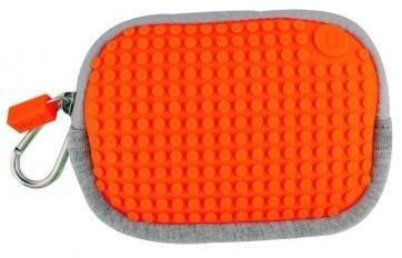 Szara bawełniana saszetka z pomarańczowym panelem silikonowym ( panel silikonowy - jest to specjalna powierzchnia,na której za pomocą silikonowych pixelowych klocków można układać niepowtarzalne wzory,które nadają produktowi wyjątkowy charakter ) o wymiarach 13 x 18 punktów , co daje 214 pozycji, aby układać swoje pomysły. Pokryty pikselami panel saszetki jest giętki i niezwykle trwały. Piksele bardzo dobrze trzymają się powierzchni, przez co są odporne na codzienne użytkowanie produktu.