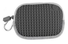 Szara bawełniana saszetka z szarym panelem silikonowym ( panel silikonowy - jest to specjalna powierzchnia,na której za pomocą silikonowych pixelowych klocków można układać niepowtarzalne wzory,które nadają produktowi wyjątkowy charakter ) o wymiarach 13 x 18 punktów , co daje 214 pozycji, aby układać swoje pomysły. Pokryty pikselami panel saszetki jest giętki i niezwykle trwały. Piksele bardzo dobrze trzymają się powierzchni, przez co są odporne na codzienne użytkowanie produktu.