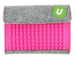 Szary filcowy portfelik z panelem silikonowym w kolorze fuksji ( panel silikonowy - jest to specjalna powierzchnia, na której za pomocą silikonowych pixelowych klocków można układać niepowtarzalne wzory, które nadają produktowi wyjątkowy charakter ) o wymiarach 15 x 10 punktów , co daje 135 pozycji, aby układać swoje pomysły. Pokryty pikselami panel portfelika jest giętki i niezwykle trwały. Piksele bardzo dobrze trzymają się powierzchni, przez co są odporne na codzienne użytkowanie produktu.