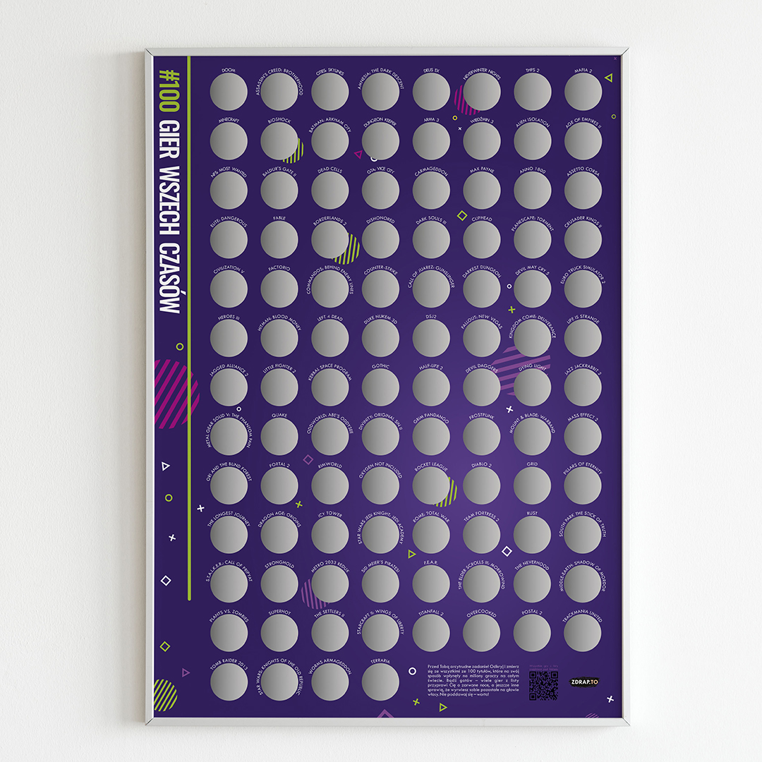 Opis produktuZasady bezpieczeństwaByło ciężko, ale wybraliśmy 100 genialnych gier, które powinien poznać każdy szanujący się gracz. Sięgnęliśmy do wielu źródeł i udało nam się przygotować listę jak żadna inna! Plakat skrywa 100 kreatywnych grafik związanych właśnie z tymi grami. By je odkryć, poznaj każdy z tytułów i zdrap odpowiednie pole! Stworzony w Polsce!Patrzysz na plakat, który powstawał od początku do końca w Polsce - od designu, po druk. Omijaj ,,azjatyckie"" odpowiedniki, które dziurawią się przy drapaniu i strasznie brudzą. Stawiamy na najwyższą jakość i zawsze jesteśmy ,,naj"" - najgrubszy papier 250g, największy rozmiar B2, najszybsza dostawa! Zaskocz bliską Ci osobę!Takiego prezentu nikt się nie spodziewa... Jeśli szukasz czegoś niebanalnego i unikatowego, wybierz plakat zdrapkę - to trafiony prezent dla miłośnika gier komputerowych, na każdą okazję! Pokaż, że rozumiesz pasję tej wyjątkowej osoby ❤️ x
