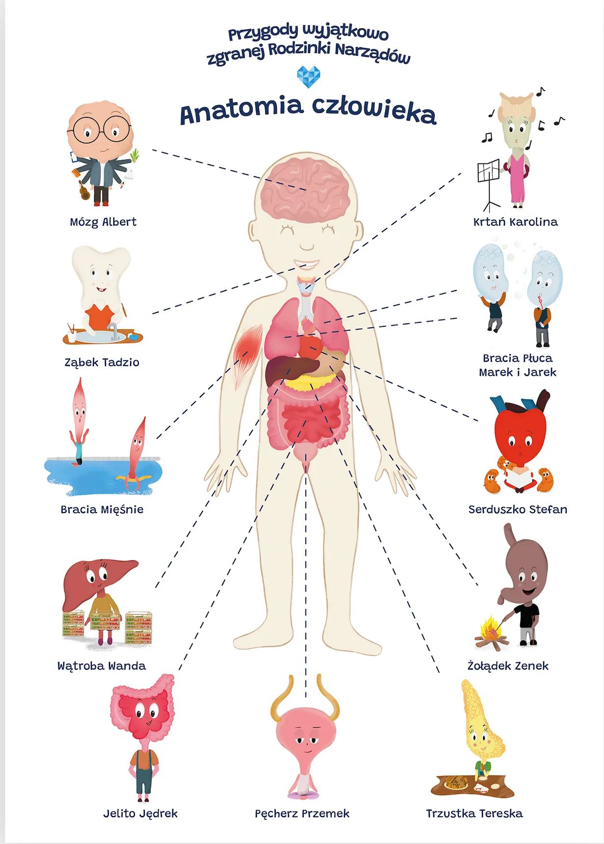 Opis produktuZasady bezpieczeństwaNOWOCZESNY STYL Edukacyjna plansza dla dziecka to nie tylko praktyczna pomoc naukowa, ale także ciekawa dekoracja dziecięcego pokoju! Nowoczesny design i kolorystyka sprawiają, że plansza komponuje się praktycznie w każdym wnętrzu. ŚWIETNA POMOC NAUKOWA Plansza przedstawia wszystkie najważniejsze narządy człowieka w swoim anatomicznym położeniu. DUŻY I PRZEJRZYSTY Format A2 powoduje, że każdy szczegół jest dobrze widoczny i dzięki temu łatwiej zapamiętać najważniejsze wartości. PRODUKT NAJWYŻSZEJ JAKOŚCI Plakat wydrukowany jest w kolorze, na najwyższej jakości papierze satynowym o grubości 200 g. Całość bezpiecznie zapakowana w tubę kartonową. IDEALNY NA PREZENT dla wszystkich, którzy kochają naukę! *Plakat wysyłamy bez ramki. x