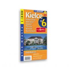 Plan Kielc w skali 1:18 000 plus centrum w skali 1:10 000, wzbogacony o plany najważniejszych miast w okolicy.- Ulice jednokierunkowe, sygnalizacja świetlna, znaki kontroli radarowej- Linie komunikacyjne- Rzeźba terenu Spisy ulic i informacje teleadresowe okolicznych miast- Szlaki turystyczne i ścieżki rowerowe.