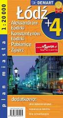 Plan Łodzi w skali 1:20 000, wzbogacony o mapy najważniejszych miast w okolicy - ulice jednokierunkowe- wysokość wiaduktów- sygnalizacja świetlna- linie komunikacyjne.