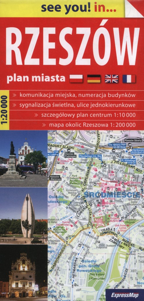 Na planie m.in.: szczegółowy rysunek zabudowy wraz z numeracją budynków wzdłuż ulic i na osiedlach, linie autobusowe wraz z przystankami, sygnalizacja świetlna, ulice jednokierunkowe, parkingi, bogata treść turystyczna, w tym piesze szlaki turystyczne, zabytki, muzea, hotele i domy wczasowe, schroniska młodzieżowe i inne istotne obiekty, budynki użyteczności publicznej, centra handlowe, szczegółowy plan centrum w skali 1:10 000 (1 cm ? 100 m), mapa okolic Rzeszowa w skali 1:200 000 (1 cm ? 2 km), skorowidz ulic. Jakość w przystępnej cenie. Do tradycyjnych map papierowych dołączamy plastikowe etui, które chroni mapę przed wilgocią i uszkodzeniem. Seria obejmuje zarówno mapy samochodowe oraz plany miast, jak i mapy turystyczne. x