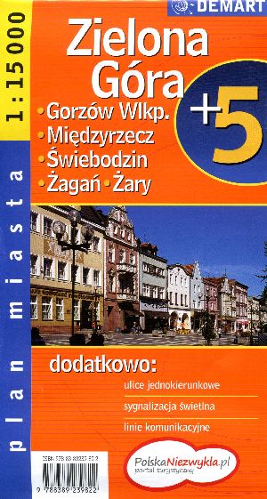 Skala kartonu centrum 1:7500.; skala planu Zielonej Góry 1:20 tys. (skala kartonu centrum 1:10 000)Poza planami tytułowymi zawiera plany Międzyrzecza, Świebodzina, Żagania, Żar (w skalach 1:15 tys. - 1:17 tys.).Mapa zawiera:- szczegółowy i aktualny rysunek planu- ulice jednokierunkowe- sygnalizacja świetlna- linie komunikacyjne- spisy ulic i krótkie informatory teleadresowe zamieszczonych miast- bogata treść turystyczna i tematyczna- szlaki turystyczne, szlaki lokalne, szlaki i ścieżki rowerowe