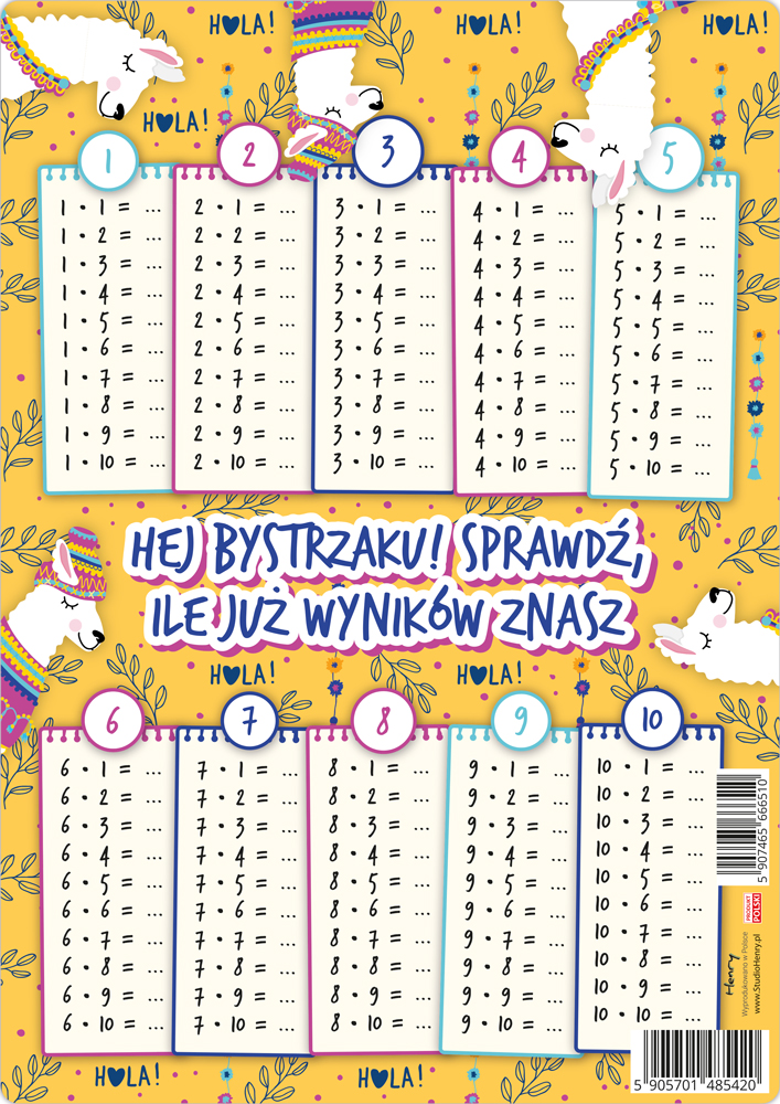Plansza edukacyjna A4 tabliczka mnożenia lamy
