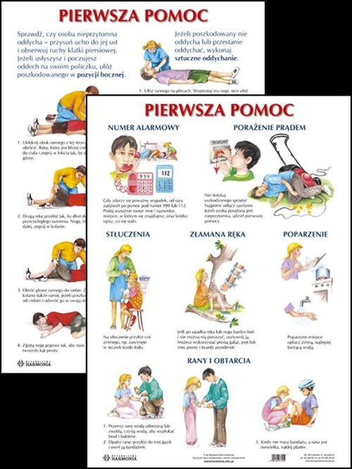 PIERWSZA POMOC♦ format 61 cm x 86 cm♦ dwustronnie zalaminowane♦ wieloletnia trwałośćZ planszy tej dzieci dowiedzą się, jak powinny postąpić, gdy staną się świadkami wypadku, oraz nauczą się, jak prawidłowo krok po kroku należy udzielać pierwszej pomocy poszkodowanemu. Poznają także wskazówki, jak w pierwszej chwili powinny sobie poradzić, gdy same doznają urazu: złamią nogę, poparzą się albo stłuką kolano. Planszę można wykorzystać na każdym etapie nauki: zarówno w przedszkolu, klasach 1-3, jak i na lekcjach przyrody.