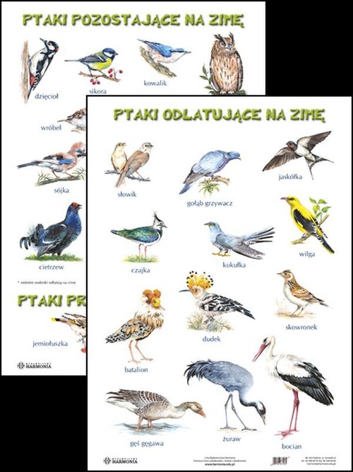 PTAKI ODLATUJĄCE NA ZIMĘ / PTAKI POZOSTAJĄCE NA ZIMĘ / PTAKI PRZYLATUJĄCE NA ZIMĘ♦ format 61 cm x 86 cm♦ dwustronnie zalaminowane♦ wieloletnia trwałość