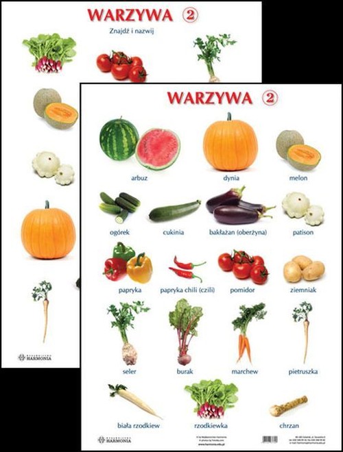 Prezentujemy Państwu plansze edukacyjne dla przedszkoli i klas 1-3. Jest to zestaw pomocy dydaktycznych, które przydadzą się w każdej klasie i sali przedszkolnej.Tematyka plansz jest zgodna z programem nauczania i dotyczy rzeczy bliskich dziecku. Dzięki wyrazistym ilustracjom i zdjęciom tablice w przyjazny sposób przedstawiają realia naszego świata. Poszczególne wzory sprawdzą się w dekorowaniu klasy lub pokoju dziecka, zwłaszcza jeśli ma już ono swoje zainteresowania.Na drugiej planszy z warzywami znajdują się najpopularniejsze warzywa obecne w naszej kuchni. Są wśród nich papryka, pomidory i marchew oraz bardziej egzotyczne, jak patisony. Warzywa na drugiej stronie nie mają podpisów, by dziecko mogło je nazwać samodzielnie.