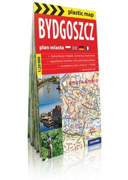 Dwustronnie foliowany, trwały plan Bydgoszczy* szczegółowy rysunek zabudowy wraz z numeracją budynków wzdłuż ulic i na osiedlach* linie autobusowe i tramwajowe wraz z przystankami* sygnalizacja świetlna, ulice jednokierunkowe, parkingi* bogata treść turystyczna, m.in.: zabytki, muzea, szlaki turystyczne, hotele i inne istotne obiekty* budynki użyteczności publicznej, centra handlowe* szczegółowe plan centrum w skali 1:10 000 (1 cm ? 100 m)* informator teleadresowy* skorowidz ulic