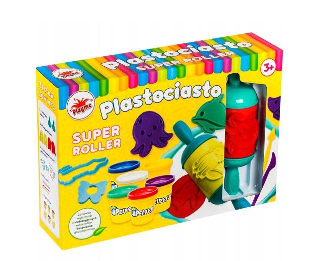 Zestaw zawiera: 2 uchwyty rolkowe, 2 formy wałkowe, 6 foremek w kształcie zwierzątek, narzędzia, 6 pojemników plastociasta w różnych kolorach.