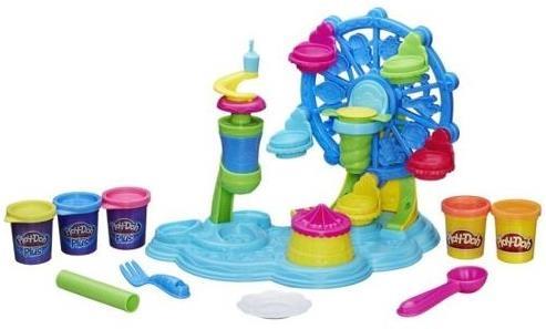 Rozpocznij Wielkie Babeczkowe Święto! Zafunduj swoim kulinarnym wypiekom szloną jazdę na Diabelskim Młynie, a potem pokryj je piękną polewą Play-doh. Następnie posyp swoje babeczki deszczem szalonych posypek Play-Doh. Możesz także zrobić kolorowe ciasteczka, krakersy oraz cukierki do wypełnienia całości Twojego ekstrawaganckiego deseru Play-doh.