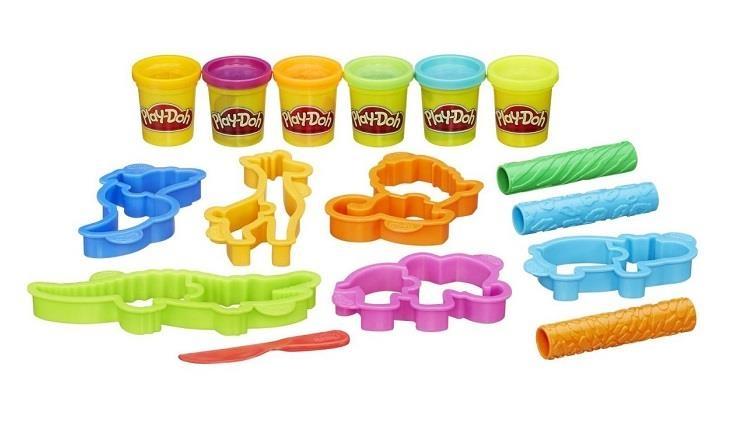 Play-Doh i wszystkie związane z nim są znakami towarowymi firmy Hasbro.Produkt zawiera 6 zwierzęcych foremek, 3 wałki do robienia wzorków, plastikowy nożyk i 6 tub Play-Doh.