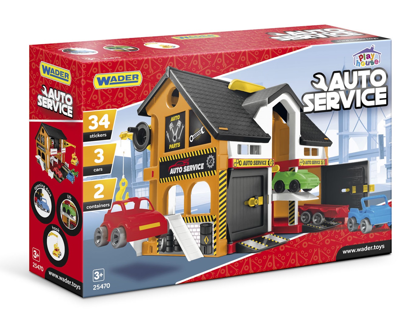 Play House Auto Serwis jest dwupiętrowym domkiem z wieloma ruchomymi elementami takimi jak otwierane drzwi, winda, dźwig. W zestawie znajdują się również trzy samochody, podjazdy oraz zestaw 34 naklejek do samodzielnego przyklejenia. Zabawa tym produktem zaczyna się już od chwili montowania elementów serwisu, jest to zadanie ciekawe i wciągające, jak również mające wpływ na rozwój dziecka i zdolność logicznego myślenia. Zarówno w trakcie montażu oraz samej zabawy w warsztat rozwija się wyobraźnia malucha i jego inteligencja wizualno-przestrzenna. Kluczowy jest również rozwój funkcji psychomotorycznych i zdolności manualnych. Wszystkie elementy zabawki zostały wykonane z bezpiecznych i wytrzymałych materiałów; ponadto produkt nie posiada ostrych krawędzi i kantów. Elementy domku łączą się ze sobą w prosty i trwały sposób, co daje gwarancję, że nic nie przeszkodzi dziecku w trakcie doskonałej zabawy. Dzięki uchwytowi zamocowanemu na dachu, zabawkę można bez kłopotu przenosić w dowolne miejsce. piętrowy dom warsztat o wymiarach 37 cm x 30 cm w skład zestawu wchodzi domek warsztat z otwieranymi drzwiami, winda, dźwig, 3 samochody, podjazdy i 3 kontenery uchwyt na dachu daje możliwość swobodnego przenoszenia domku w dowolne miejsce wszystkie elementy są bezpieczne dla dzieci, wykonane z wytrzymałych materiałów zestaw doskonały do zabawy kilku osób równocześnie: dzieci z dorosłymi czy rówieśników; atrakcyjny również do samodzielnej zabawy zabawa produktem pobudza wyobraźnię i kreatywność dziecka, sprzyja rozwojowi funkcji psychomotorycznych oraz rozwija jego zdolności manualne przeznaczony dla dzieci 3+ x