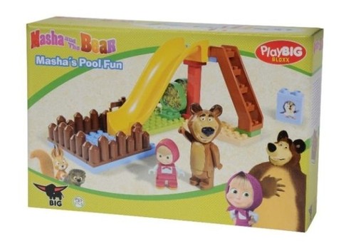 Kolorowe, wysokiej jakości klocki na licencji Masza i Niedźwiedź,w zestawie figurki Maszy i Niedźwiedzia
