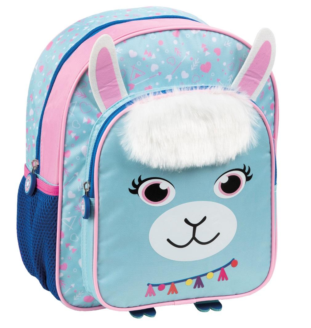 Kolorowy plecaczek z grafiką lamy . Wykonany z impregnowanej tkaniny. Plecak posiada dwie komory zapinane na zamek zakończony ozdobnym pullerem. Wnętrze plecaka wykończone jest podszewką. Długość szelek można regulować . Dodatkowo plecak posiada uchwyt do przenoszenia.