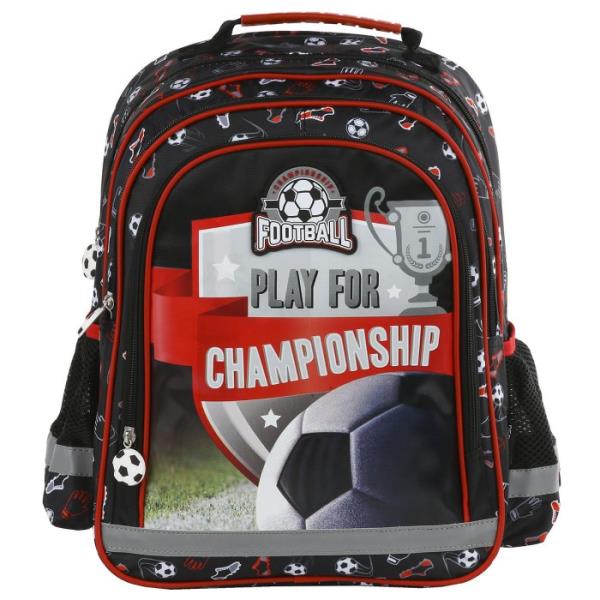 Dwukomorowy plecak szkolny z obszerną kieszenią przednią. Po bokach znajdują się dwie boczne kieszonki wykończone siatką. Plecak posiada miękkie wyściełane szelki, ergonomiczne plecy, taśmy odblaskowe, wzmacnianą rączkę oraz wzmacniane dno.