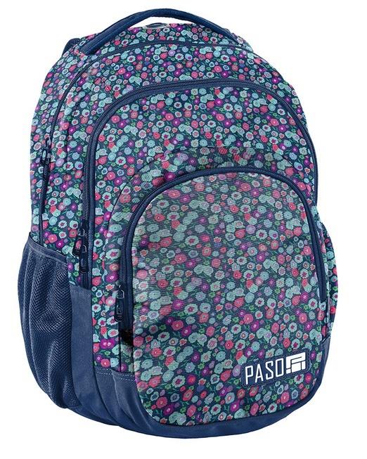 Plecak młodzieżowy, szkolny. Dwie pojemne komory, kieszeń przednia z organizerem, 2 boczne kieszenie z siatki. Wzmocnione profilowane plecy evafoam miękkie wygodne szelki. Wygodny uchwyt do przenoszenia i uszko do powieszenia. W komorze głównej przegroda (na laptop), w drugiej komorze organizer z kieszenią na zamek, uchwyt na klucze. Elementy odblaskowe dla większego bezpieczeństwa.