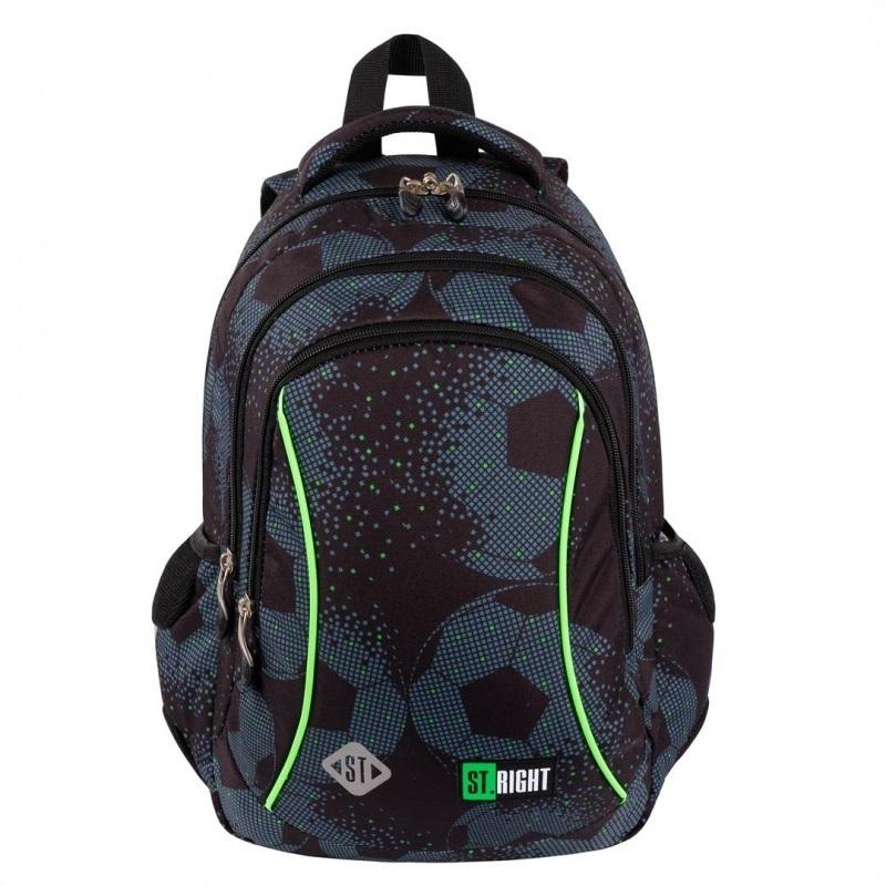 Opis produktuZasady bezpieczeństwaPojemny i funkcjonalny plecak szkolny idealny dla ucznia klas 1-3 szkoły podstawowej. Tył plecaka jest mocno usztywniony, ergonomiczny i pokryty oddychającym materiałem. Dane techniczne: wysokość: 39 cm szerokość: 27 cm głębokość: 17 cm waga: 650 g pojemność: 20l materiał: Polyester czyścić ręcznie w temp. 30 stopni wzór: FOOTBALL model: BP26 x