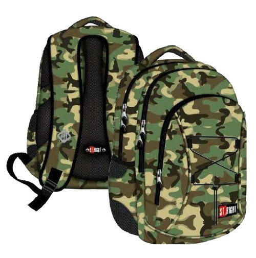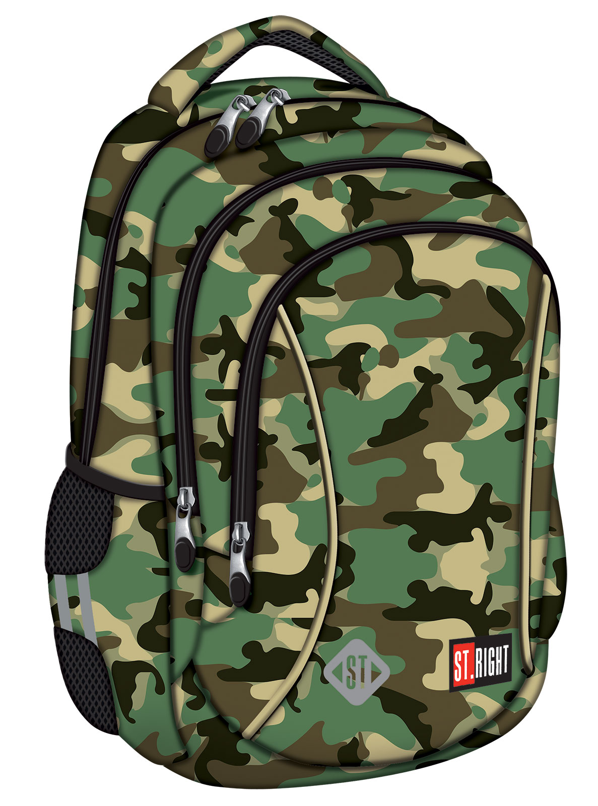 Opis produktuZasady bezpieczeństwaPojemny i funkcjonalny plecak szkolny idealny dla ucznia klas 1-3 szkoły podstawowej. Plecak charakteryzuje bardzo staranne wykonanie oraz ciekawy wzór moro. Wykonany jest z wodoodpornego i wytrzymałego materiału. Plecak jest bardzo pojemny, posiada 3 duże komory. W komorze głównej mała kieszonka zamykana na zamek. W komorze frontowej znajduje się praktyczny organizer z zawieszką na klucze pomoże zorganizować przestrzeń, utrzymać ład i porządek. Po bokach plecak posiada dwie otwarte kieszenie na butelkę wody lub bidon. Wszystkie suwaki zakończone są dużymi poręcznymi pullerami.Tył plecaka jest mocno usztywniony, ergonomiczny i pokryty oddychającym materiałem. Szelki są szerokie, miękko wyściełane z wygodną regulacją długości. Spód plecaka wzmocniony jest grubą pianką oraz gumowymi stopkami. U góry plecak ma wszyty miękko wyściełany, wzmocniony uchwyt do przenoszenia oraz posiada uchwyt do suwaka komory głównej, który pozwala na założenie zabezpieczenia kłódkowego bądź z szyfrowaniem TSA. x