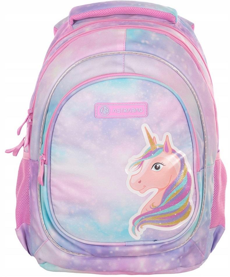 Poczuj się jak bohaterka swoich ulubionych bajek i stwórz własną historię z dziewczęcym plecakiem Astrabag. Piękna pastelowa kolorystyka ombre z dominującą grafiką jednorożca z całą pewnością skradnie serce niejednej dziewczynki zakochanej w tych baśniowych i mitycznych stworzeniach. Plecak Astrabag posiada trzy funkcjonalne komory wyposażone w praktyczną kieszonkę oraz organizer na drobiazgi. Zastosowano w nim najnowszą technologię Ergo Back minimalizującą naciski na barki i kręgosłup oraz zapewniającą poczucie komfortu dziecka.