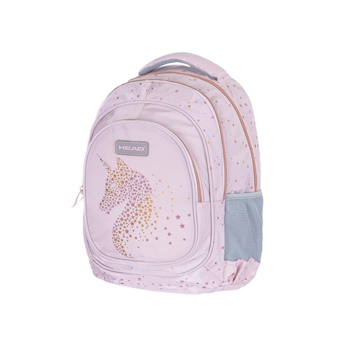 Trzykomorowy plecak Head, w różowej kolorystyce wzbogaconej złotymi dodatkami, jest stworzony z myślą o miłośniczkach elegancji w stylu glamour. Na jego froncie znajduje się efektywny brokatowy zadruk przedstawiający jednorożca. Absolutny must have tego sezonu każdej dziewczynki i nastolatki! Plecak wyposażony jest w trzy pojemne komory pełne praktycznych schowków. Zastosowano w nim wyjątkową technologię Ergo Back minimalizującą naciski na barki i kręgosłup oraz zapewniającą poczucie komfortu dziecka.