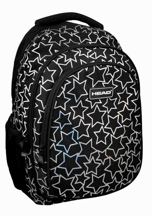 Trzykomorowy plecak Head w soczystym odcieniu czerni. Jego cała powierzchnia pokryta jest magicznymi gwiazdkami z holograficznym efektem. Wystarczy odrobina światła, by mienił się tysiącem kolorów. Plecak Head posiada trzy funkcjonalne komory wyposażone w praktyczną kieszonkę oraz organizer na drobiazgi. Zastosowano w nim najnowszą technologię Ergo Back minimalizującą naciski na barki i kręgosłup oraz zapewniającą poczucie komfortu dziecka.