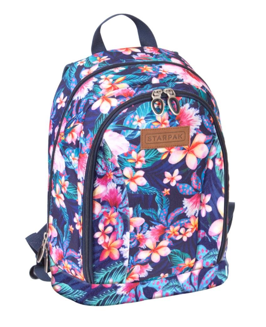 Plecak STK składający się z dwóch pojemnych komór i usztywnianych, wypełnionych gąbką pleców. Plecak posiada wewnętrzny organizer na różne drobiazgi i długopisy. Na plecach plecaka, od jego wewnętrznej strony, znajduje się dodatkowa kieszonka zasuwana na zamek. Powierzchnia plecaka jest pokryta atrakcyjnym, młodzieżowym wzorem.