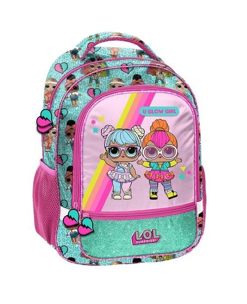 Plecak szkolny Paso LOL Surprise. Produkt składa się z dwóch dużych komór, kieszeni na froncie oraz z dwóch bocznych kieszonek wykonanych z siatki. W kieszonkach z łatwością pomieści się termos czy bidon. Elementy odblaskowe umieszczone na plecaku sprawiają, że dziecko będzie jeszcze bardziej widoczne, a co za tym idzie – bezpieczne. Usztywniane gąbką, ergonomiczne wyprofilowane plecy oraz regulowane szelki pokryte miękkim materiałem zapewniają dziecku prawidłową postawę i odciążają kręgosłup. Dzięki tym cechom plecak jest bardzo komfortowy a noszenie podręczników oraz zeszytów jest niezwykle wygodne. Plecak wyposażony jest w wygodny uchwyt do przenoszenia oraz usztywnione dno, wzmocnione i zabezpieczone gumowymi stopkami. Wygodne ozdobne pullery ułatwiają odpinanie zamków. Plecak uszyty jest z materiału odpornego na przemakanie.