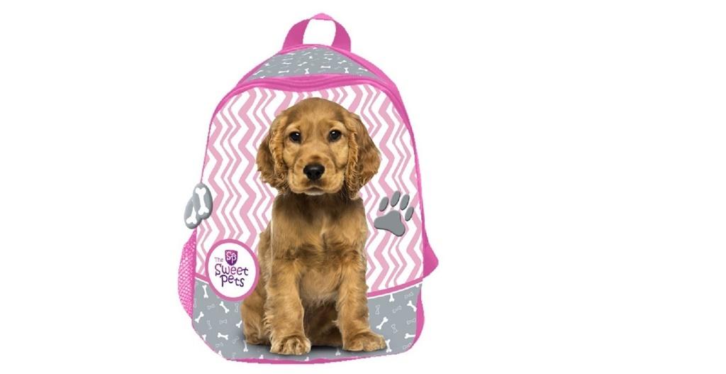 PLECAK MAŁY 2komorowy, na boku posiada kieszonkę z elastycznej siatki. Na froncie plecaka oraz na szelkach znajdują się elementy odblaskowe. Całość wykonana z poliestru. Wewnątrz plecaka kolorowa grafika. Dodatkowo zamki zakończone są ozdobnymi zawieszkami. Wysokość: 29 cm Szerokość: 23,6 cm