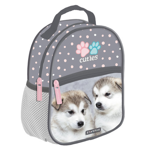 Plecak mini z kolekcji Starpak z licencją Cuties jest idealny dla przedszkolaka do codziennego użytkowania lub dla pierwszaka na wycieczki szkolne. Plecak posiada jedną główną komorę oraz przednią kieszeń - obie zamykane na zamek. Plecak wyposażono w wytrzymałe ramiona z szeroką możliwością regulacji oraz ucho, ułatwiające przechowywanie czy przenoszenie. Zapoznaj się również z innymi produktami Starpak z serii Cuties! Plecak jest wyrobem tekstylnym. Przeznaczony dla dzieci w wieku: 3+. Wymiary produktu(wys.x szer. x gł.) [cm]: 24x20x9.
