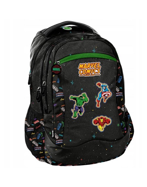 Plecak młodzieżowy, szkolny Marvel. Posiada trzy pojemne komory, kieszeń przednią z organizerem zamykaną na zamek oraz dwie boczne kieszonki wykonane z siatki, które pomieszczą butelkę, bidon czy termos. W komorze głównej znajduje się przegroda (na laptop), w drugiej komorze organizer z kieszenią na zamek oraz uchwyt na klucze. Wzmocnione profilowane plecy oraz miękkie, regulowane szelki sprawiają, że plecak nosi się niezwykle komfortowo. Plecak posiada wygodny uchwyt do przenoszenia, uszko do powieszenia oraz elementy odblaskowe dla zwiększenia bezpieczeństwa na drodze lub po zmroku. Ze względu na swój rozmiar, plecak to idealnie rozwiązanie zarówno dla nastolatków, jak i dla młodszych dzieci. W Paso sięgamy po nowoczesne wzornictwo, nie zapominając o tym, by oferować solidne i praktyczne produkty.
