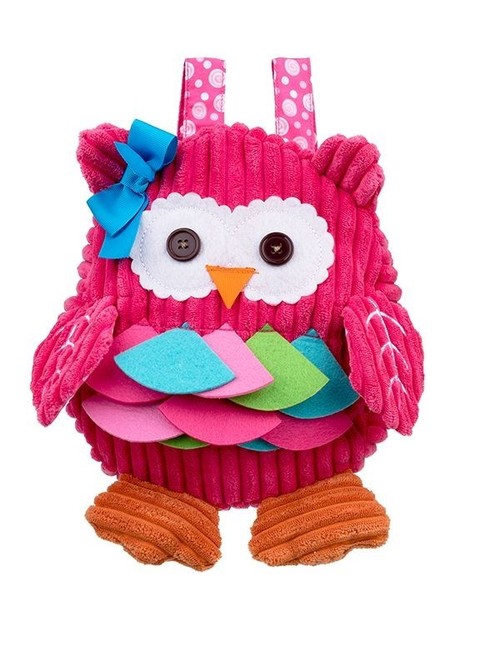 Różowiutka sówka to najlepsza przyjaciółka małych księżniczek. Jest milutka i uwielbia chodzić z nimi na wycieczki. Jej brzuszek zdobią filcowe elementy w słodkich kolorach, a odstające skrzydełka uroczo podskakują przy każdym poruszeniu. Dzięki ukrytemu w jej piórkach zameczkowi, chętnie przechowuje drugie śniadanie lub ukochaną zabawką, którą maluch postanowi zabrać ze sobą na spacer. Przyczepione do jej plecków regulowane szelki w magiczny sposób dopasują się do wzrostu szkraba, aby sówka mogła jej towarzyszyć przez długi czas.