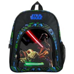 Mały plecak wycieczkowy/przedszkolny, jednokomorowy, jedna kieszeń na zamek na froncie, jedna boczna kieszeń z siatki, szelki z regulacją długości, miejsce na plecach na identyfikator. Wymiary: 33x32x14 cm