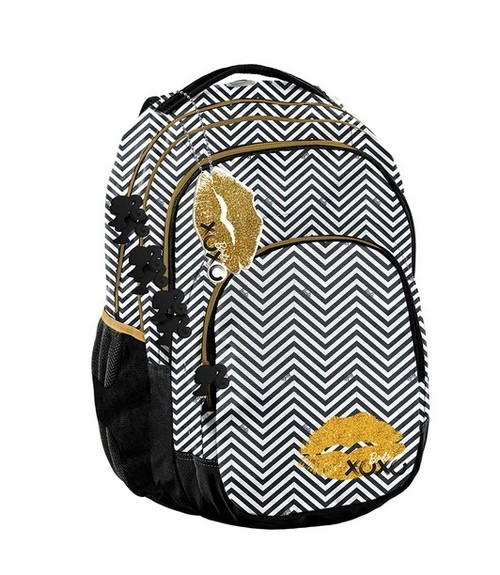 Plecak młodzieżowy, szkolny Barbie Lipstick. Posiada trzy pojemne komory, kieszeń przednią z organizerem zamykaną na zamek oraz dwie boczne kieszonki wykonane z siatki, które pomieszczą butelkę, bidon czy termos. W komorze głównej znajduje się przegroda (na laptop), w drugiej komorze organizer z kieszenią na zamek oraz uchwyt na klucze. Wzmocnione profilowane plecy evafoam oraz miękkie, regulowane szelki sprawiają, że plecak nosi się niezwykle komfortowo. Plecak posiada wygodny uchwyt do przenoszenia, uszko do powieszenia oraz elementy odblaskowe dla zwiększenia bezpieczeństwa na drodze lub po zmroku. W Paso sięgamy po nowoczesne wzornictwo, nie zapominając o tym, by oferować solidne i praktyczne produkty.