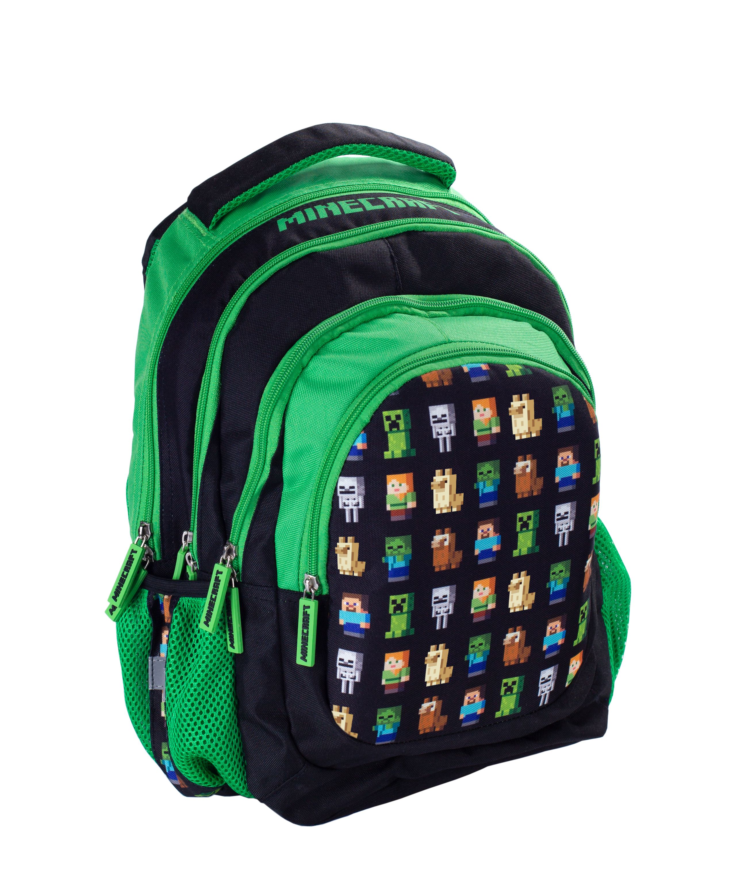 Plecak został wyprodukowany przez renomowaną firmę Astra. Czterokomorowy plecak idealny do szkoły czy na wycieczki. Plecak w zielono-czarnej kolorystyce i z motywami najpopularniejszych bohaterów gry. Główna komora pomieści format A4, a w środku znajdziemy miejsce na laptop czy tablet. W środku znajduje się również mała kieszonka wyściełana polarem. W mniejszej kieszonce specjalne przegródki na zeszyt, długopisy i inne drobiazgi oraz przywieszkę na klucze. Plecak posiada również 2 dodatkowe boczne kieszenie na gumkę. Poręczne przywieszki z logiem Minecraft ułatwiające otwieranie. Odblaskowe elementy sprawią, że uczeń będzie widoczny w każdych warunkach. Usztywniany tył zachowuje stabilność przez co wymusza zachowanie prawidłowej postawy oraz zapobiega uciskom. Wyprofilowane plecy pokryte są oddychającą pianką. Dzięki szerokim, profilowanym i regulowanym szelkom, można go w prosty sposób dopasować do pleców. x