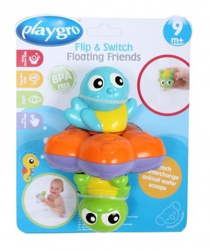 Obróć i przekręć ,a następnie... przekręći obróć. Możliwości zabawypodczas wieczornej kąpieli z PŁYWAJACYMI PRZYJACIóŁMI PLAYGROjestsporo. Zabawne postaci zwierzątek można odkręcać i dowolnie przykręcać do jednej ze stron zabawki. Mogą posłużyć także za swoisty czerpak do wody, by polewać nimi platformę bądź przelewać wodę pomiędzy sobą. Absorbująca dla dziecka jest także obserwacjajak zabawkidryfują i obracają sięna powierzchni wody wychylając się spod jej tafli na przemian.Zabawę uatrakcyjniają odgłosy grzechotki, która mieści się w środku pływającej platformy.Cechy:- 2 postaci zwierzątek - kubeczków , przykręcanych wymiennie do platformy możliwość nabierania i przelewania wody za pomocą kubeczków-zwierzątek odgłos grzechotki.Zabawka od 9 m-ca. Nie zaiwera ftalanów.