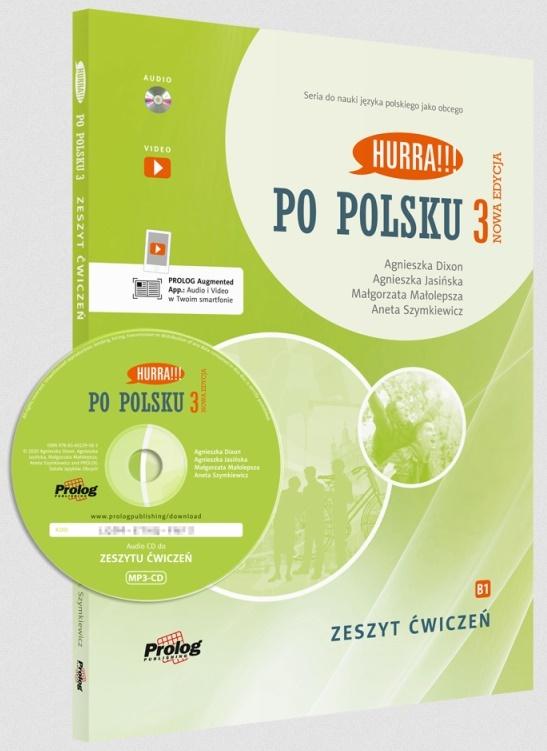 - 4 lekcje powtórzeniowe, z samooceną postępów, - klucz z rozwiązaniami ćwiczeń, - płyta CD mp3 z nagraniami do każdej lekcji i możliwością pobrania plików online, - transkrypcja nagrań, - wszystkie nagrania Audio dostępne w telefonie, w aplikacji PROLOG Augmented App dostępnej do pobrania bezpłatnie w Google Play i App Store. Zeszyt ćwiczeń pozwala na samodzielną pracę z materiałem leksykalnym i gramatycznym omawianym w podręczniku studenta PO POLSKU 3. Ponadto PO POLSKU 3: proponuje uczącym się systematyczny trening przedegzaminacyjny; każda lekcja kończy się Przygotowaniem do egzaminu na poziomie B1, zawiera ćwiczenia napisane w formacie egzaminacyjnym, co pozwoli uczącym się dobrze poznać strukturę egzaminu. Hurra!!! to pierwsza na rynku seria podręczników do nauczania języka polskiego jako obcego i jedyna, jak dotychczas, przygotowująca od podstaw do egzaminu certyfikatowego na poziomie B1. Powstała w ramach projektu UE Lingua 2 w programie Socrates w oparciu o Europejski system kształcenia językowego i standardy wymagań egzaminacyjnych. Serię charakteryzuje podejście komunikacyjne oraz promowanie nauczania języka polskiego po polsku. Podręczniki Po polsku do dziś wyznaczają trendy w polskiej glottodydaktyce, a w publikacjach naukowych podkreśla się ich innowacyjność, spójność, bogactwo elementów krajo- i kulturoznawczych oraz uwzględnienie polskich realiów. Z podręcznikami mogą pracować lektorzy i uczniowie z każdego kręgu kulturowego, nie tylko dorośli, ale także młodzież polonijna. Seria Hurra!!! jest kompletnym narzędziem do nauki języka polskiego, prowadzącym studenta od początku tego procesu do poziomu B1. Zarówno doświadczeni, jak i początkujący nauczyciele mogą korzystać ze wszystkich elementów serii, określając poziom uczących przy pomocy testu kwalifikacyjnego oraz korzystając ze wskazówek, gier i propozycji dydaktycznych z podręczników nauczyciela. Podręczniki studenta przewidziane są do pracy na lekcji, a zeszyty ćwiczeń, dzięki zamieszczonym kluczom, płytom i tekstom nagrań, do pracy indywidualnej. Dopełnieniem serii są podręczniki do nauki gramatyki opracowane w trzech wersjach językowych. W Nowej Edycji Hurra!!! do każdej lekcji dodano scenki filmowe, które wraz z opracowanymi do nich ćwiczeniami uatrakcyjniają naukę. Zaprojektowano także nową szatę graficzną. Pierwszą część poszerzono o listy słownictwa i ponownie opracowane tabele gramatyczne. W drugiej części dodano zadania rozwijające sprawność pisania, a w trzeciej sprawność mediacji. Dodatkowo opracowano dydaktycznie fragmenty tekstów literackich oraz artykułów prasowych. Podręczniki nauczyciela zostały poszerzone m.in. o dodatkowe plansze i gry językowe. Rozbudowane zeszyty ćwiczeń, w nowej odsłonie, w pełnym kolorze, są bogatą bazą materiału ćwiczeniowego, rekomendowanego nauczycielom do wykorzystania również w czasie zajęć. Aplikacja PROLOG Augmented App (Android, IOS) pozwala na łatwy dostęp do audio i video za pomocą smartfona bezpośrednio z podręczników studenta i zeszytów ćwiczeń. x