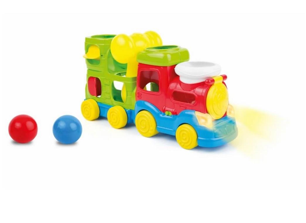 Pociąg z wagonem gra wesołe melodie, wydaje różne dźwięki i miga światełkami. Zapewnia świetną, radosną zabawę.