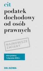 Broszura Podatek dochodowy od osób prawnych CIT jest zbiorem najistotniejszych przepisów dotyczących podatku dochodowego od osób prawnych. Zawiera tekst jednolity ustawy o podatku dochodowym od osób prawnych wraz ze zmianami, akty wykonawcze, dyrektywy w sprawie wspólnego systemu opodatkowania spółek, a także przepisy dotyczące spółek kapitałowych. Zaletą książki jest jej praktyczny, poręczny format i przejrzysty układ graficzny. Łatwą orientację w materiale umożliwia obszerny skorowidz. Zmiany oczekujące na wejście w życie umieszczono w ramkach. Pozycja warta nabycia z uwagi na liczne zmiany, które wchodzą w życie w prawie podatkowym w styczniu 2016 r. Stan prawny: 1 stycznia 2016 r.