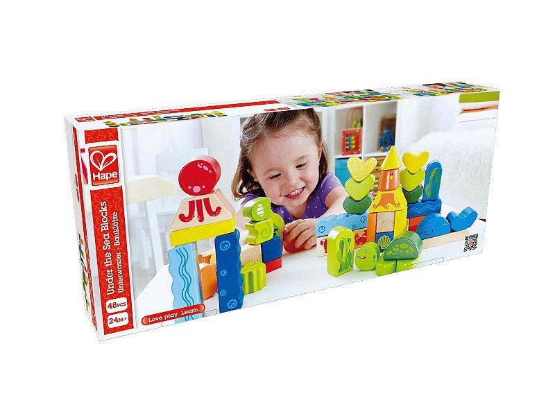 Prezentujemy Państwu przepięknie wykonane Hape podwodne klocki. Już sama nazwa kusi czym one są i jak różnią się od zwykłych klocków. Hape podwodne klocki, to pomysł na wspaniałą zabawę. Unikalność ukształtowania oraz cudowne wzorki inspirują na każdym kroku do tworzenia w zupełnie odmienny sposób. Każdy z drewnianych elementów ma niepowtarzalny kształt. Dzieci mogą ułożyć z nich czarodziejski świat, istniejący tylko w ich wyobraźni. Dzięki temu kształtują swoją koordynację ruchową oraz wrażliwość na kolory.