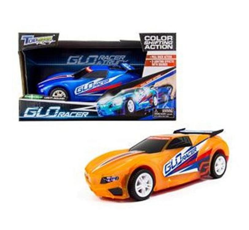 Opis produktuZasady bezpieczeństwaGlo Racer w skali 1:24 (B/O) wymiary opakowania: 24 x 13 x 13 cm wymiary auta: 18 x 7.5 x 5.5 cm, napęd pull back, 2 kolory: niebieski, pomarańczowy zasilanie: 3xAG13 (dołączone) x