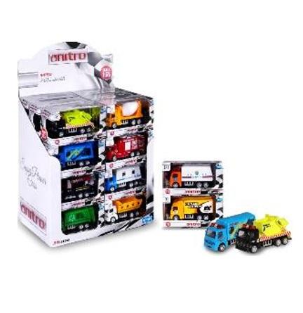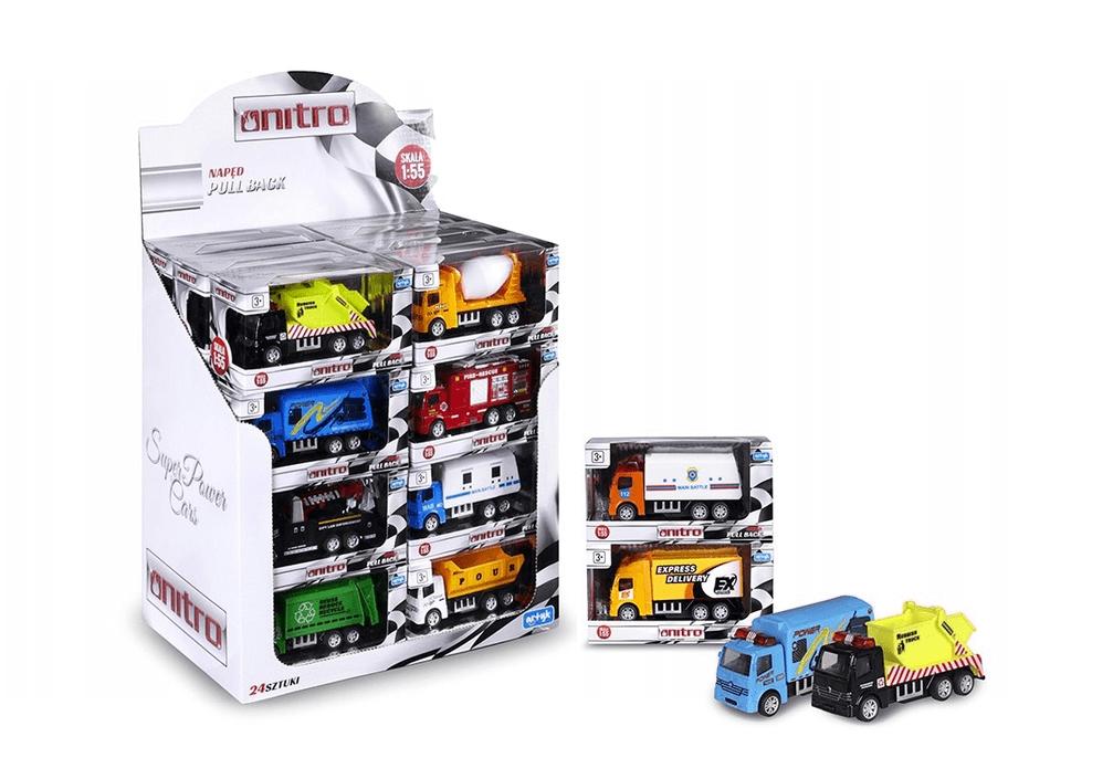 Opis produktuZasady bezpieczeństwaPojazdy budowlane skala 1:55, 12 wzorów, pull back UWAGA! Wzór wysyłany losowo x