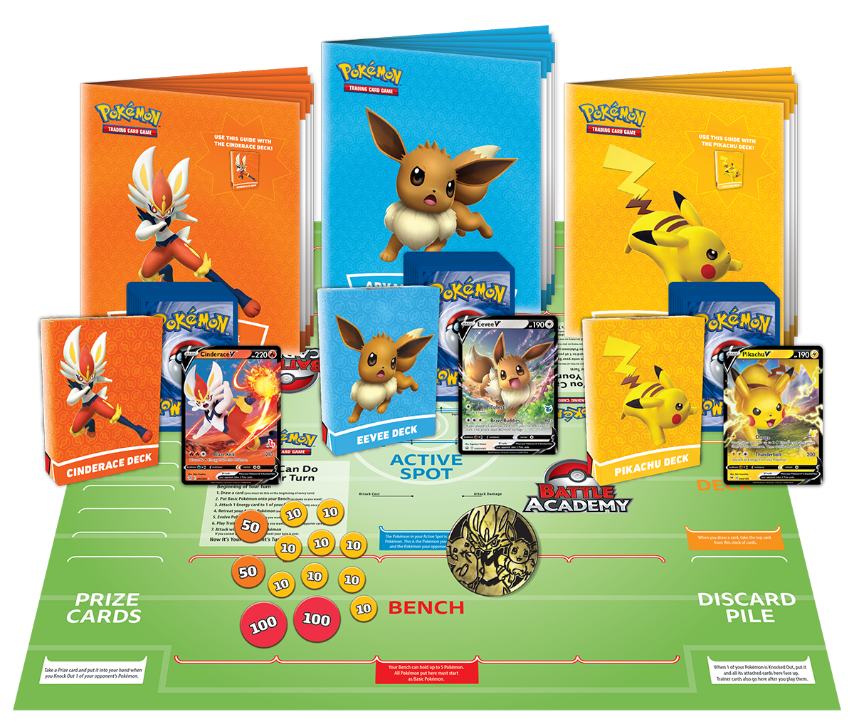 Wybierz talię z ulubionym pokemonem i stań do pojedynku z innymi trenerami. Jeśli potrzebujesz zmiany wybierz inną talię z zestawu i baw się dalej. Battle Academy to zabawa dla Ciebie, Twoich przyjaciół i całej Twojej rodziny.